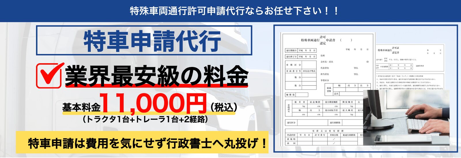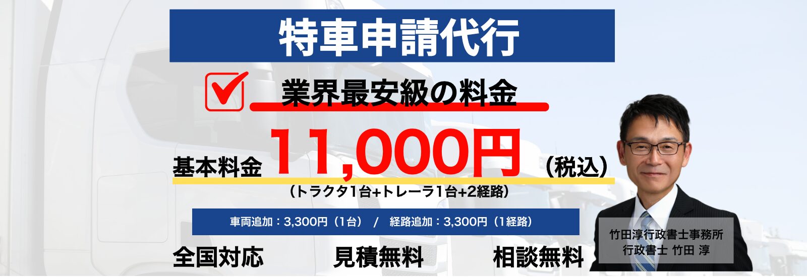 | 基本料金 (トラクタ1台+トレーラ1台+2経路まで) | 11,000円 |